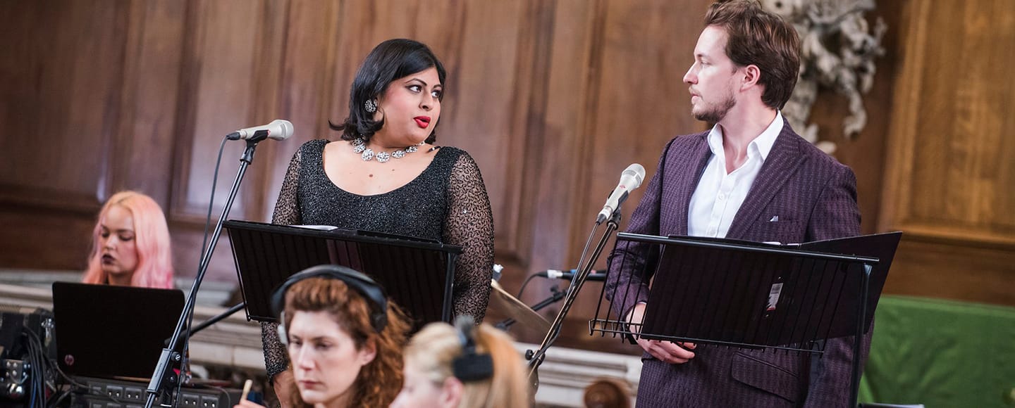 Countertenor Oliver Gerrish was joined by Soprano Meeta Raval – a Finalist in the BBC Cardiff Singer of the World Competition in 2011 – in leading the proceedings for the 55 minute-long performance, which featured five sections mirroring the life of a fruit tree, recognised as a classic metaphor for the cyclic nature of life. The first three sections explore the process from life to death, the last two open to door to immortality. These two blocks are exactly separated at the Golden Ratio: 34 minutes. All the timings of the individual segments and subsegments of the piece follow nature’s omnipresent Fibonacci Sequence.
