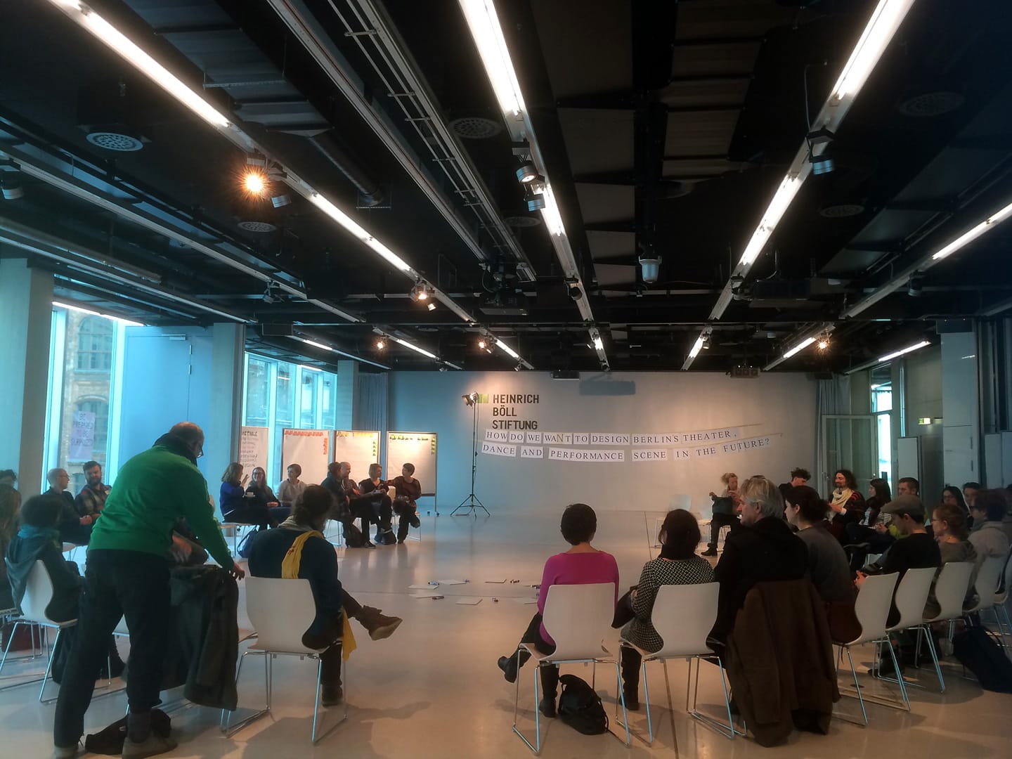 I know and love this process from many D&Ds about theatre, where Phelim McDermott, supported by his Improbable team, magisterially facilitates huge rooms full of discussions convened by the people present, on topics of their own choosing. This is “open space”. Everyone is made to feel welcome, to matter, to belong, to feel free to stay or leave, to do pretty much anything. It’s a huge tribute to Phelim that he manages to give us just enough framework to feel safe while at the same time each being utterly free.