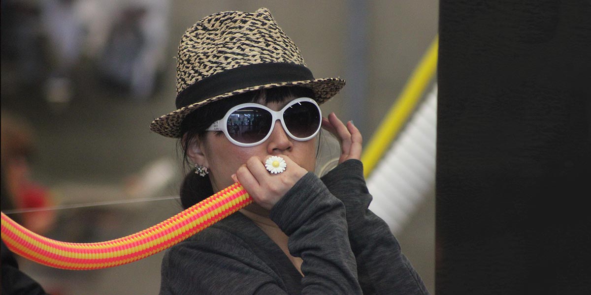 WHISPER DOWN THE LANE is a playful opera happening that should leave you with a smile on your face while also making you think a little. We try to push the boundaries of what opera can be, in sound and in form, and perform in unconventional spaces to an audience of passersby or, as in this instance, to festival-‐goers who expect to have a quiet pre-‐concert drink.